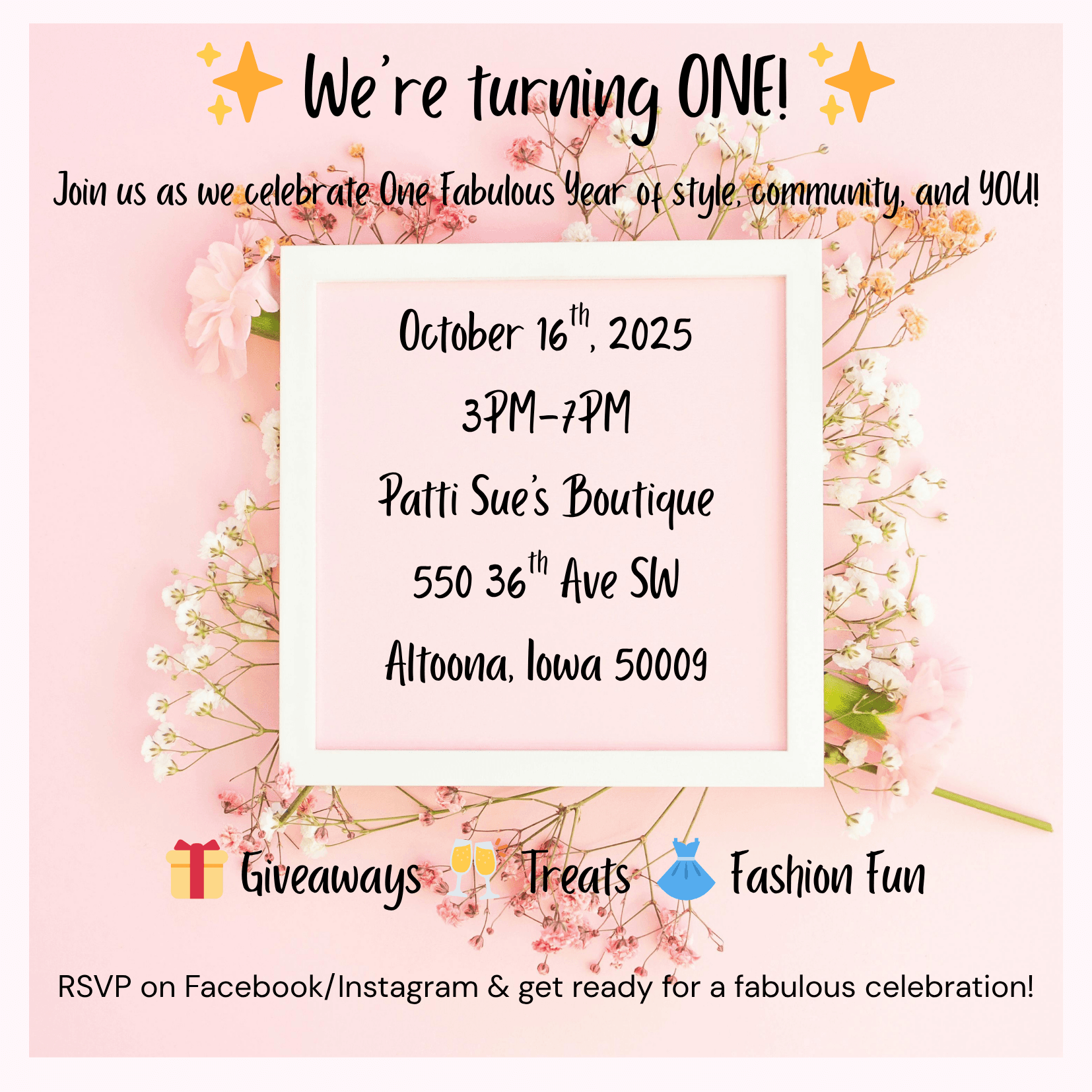 Patti Sue's Boutique: Cheers to One! Anniversary Party