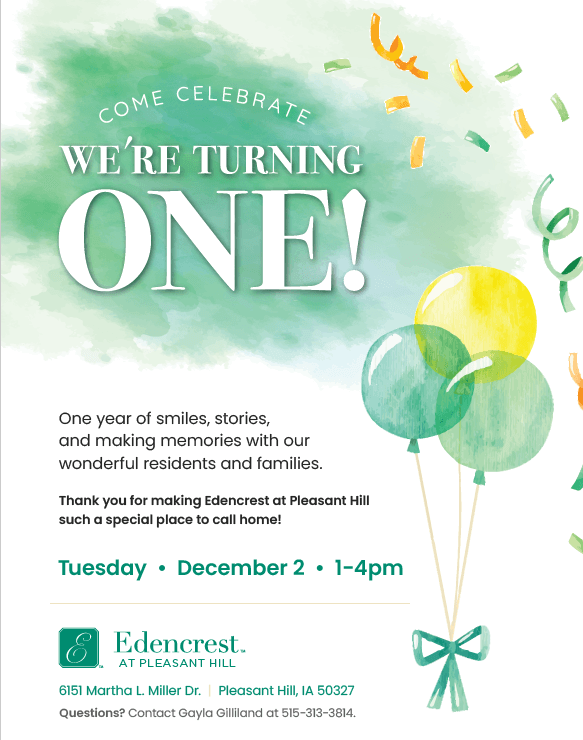 Join Edencrest at Pleasant Hill as they celebrate their 1st anniversary.