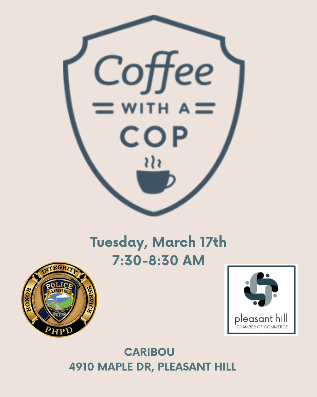 Join local law enforcement officers for a relaxed, informal time to connect. No speeches. No set agenda. Just coffee, conversation, and community.
