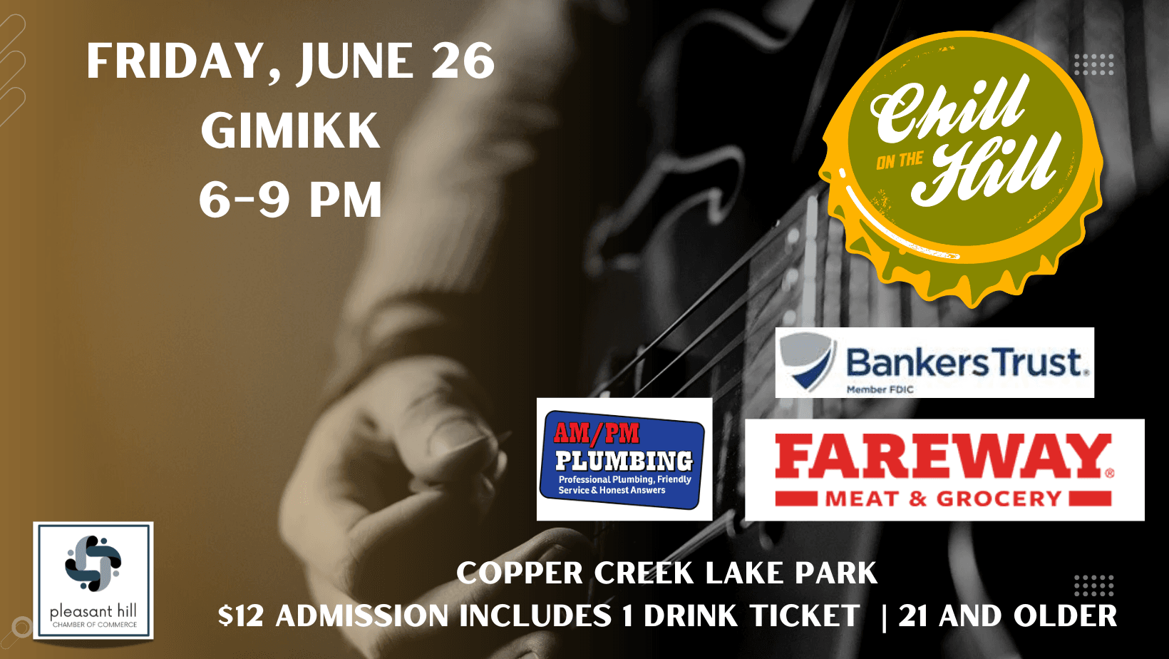 Get ready for a great night of live music, food, and fun at Chill on the Hill! Join us for an evening featuring high-energy live music from Gimikk, playing crowd favorites that will keep you dancing and singing along all night.