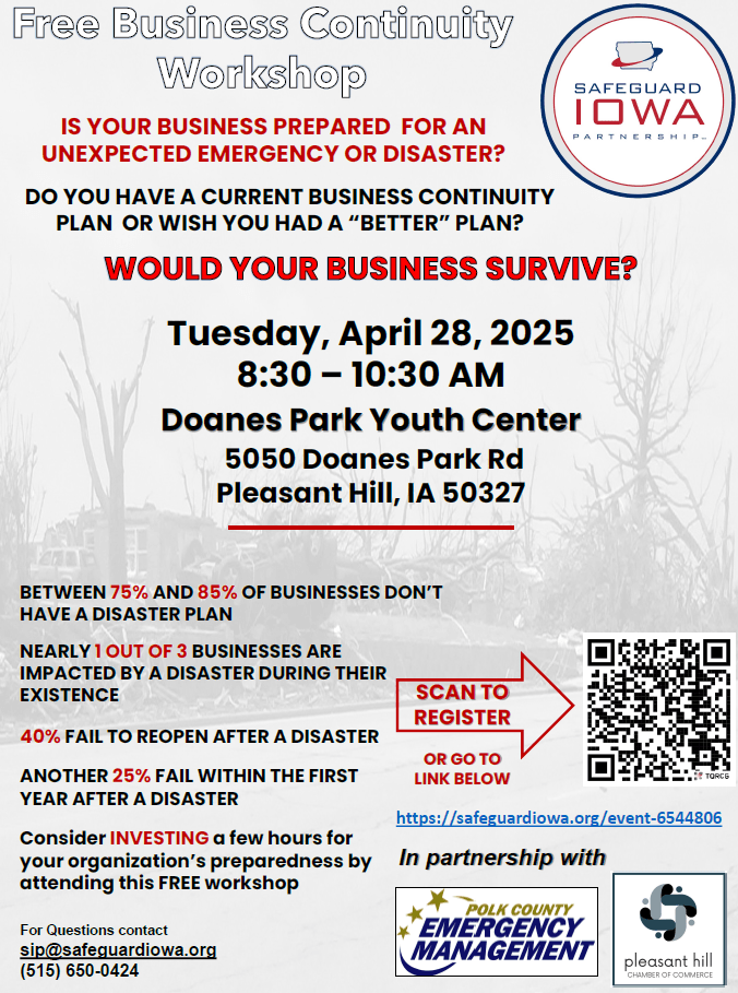 As part of our Ready Pleasant Hill initiative, we are hosting a free Business Continuity Workshop.