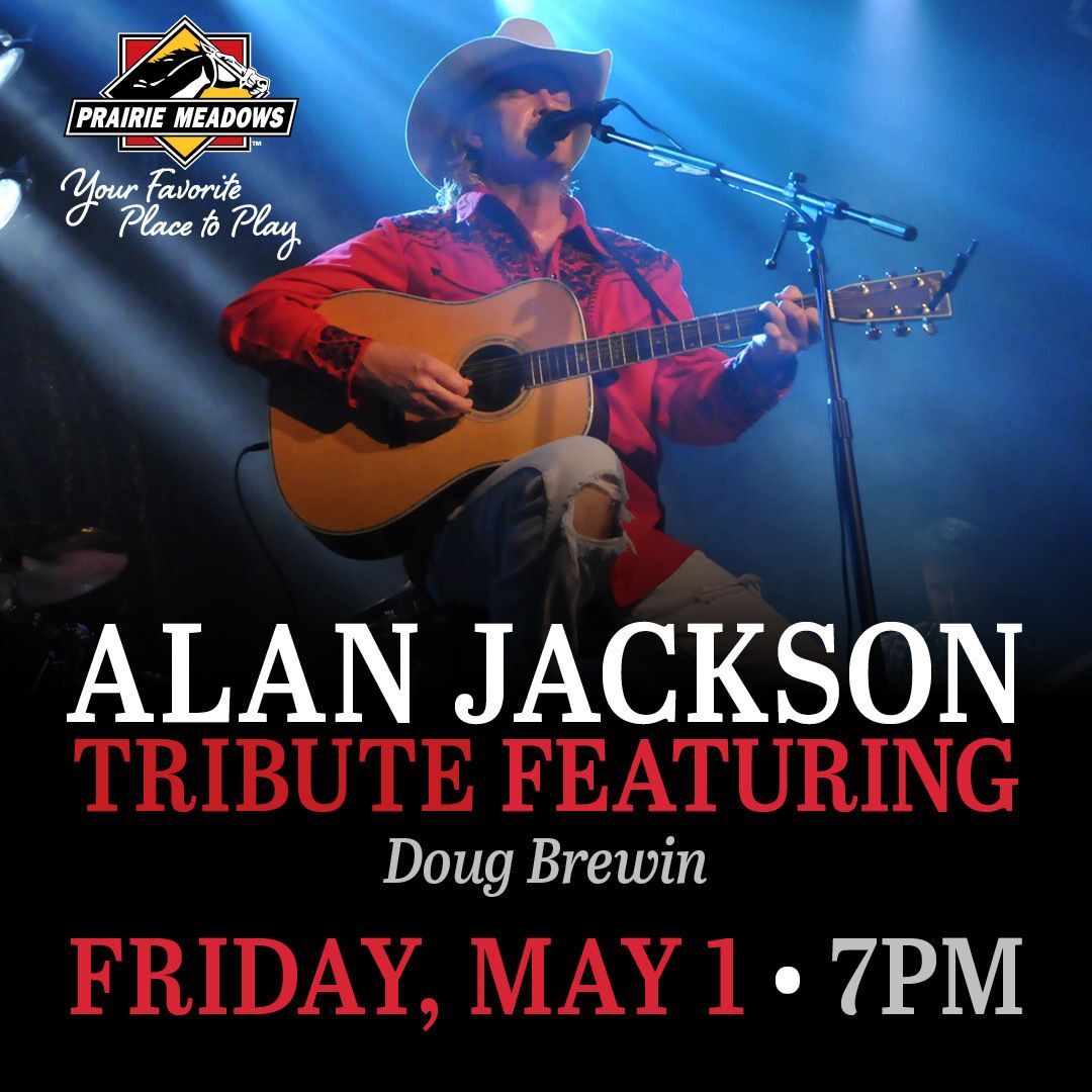 Don’t miss Doug Brewin as Alan Jackson, with a top-notch tribute in the Finish Line Show Lounge. Tickets on sale Friday, February 27, at Midwestix.com or in the Prairie Meadows Gift Shop, while supplies last.